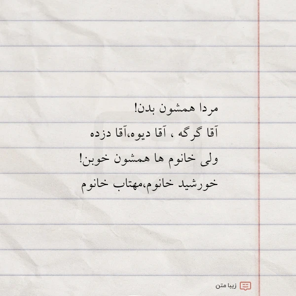 این دیالوگ طنزآمیز، دیدگاهی اغراقآمیز و جنسیتزده را نشان میدهد. شخصیت مرد با لحنی طعنهآمیز و نمایشی، کلیه مردان را بد و تمام زنان را خوب میداند. استفاده از القاب "آقا گرگه" و "آقا دیوه" در مقابل "خورشید خانم" و "مهتاب خانم" این تضاد را برجسته میکند. این بیان، بیشتر برای ایجاد کمدی و طنز در فیلم است و نباید به عنوان یک دیدگاه واقعگرایانه تلقی شود.
