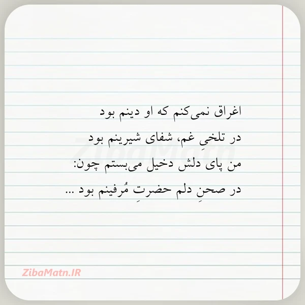 اغراق نمیکنم که او دینم بود در تلخیِ غم، شفای شیرینم بود من پای دلش دخیل میبستم چون: در صحنِ دلم حضرتِ مُرفینم بود ...