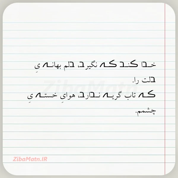خـבا ڪنـב ڪـہ نگیرב، בلم بهانـہ یِ בلت را. ڪـہ تاب گریـہ نـבارב، هوایِ خستـہ یِ چشمم.
