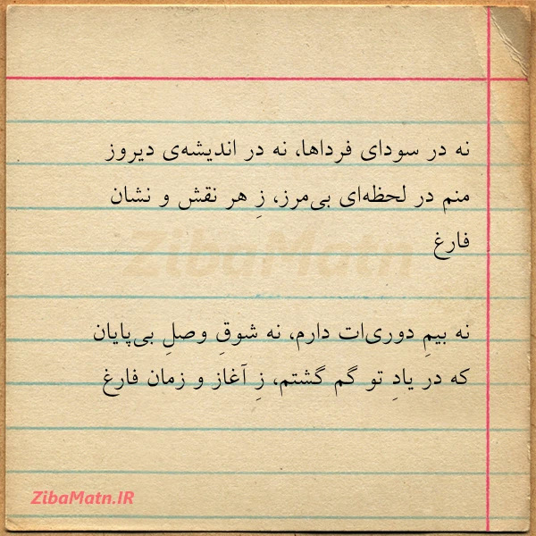 نه بیمِ دوری‌ات دارم، نه شوقِ وصلِ بی‌پایان