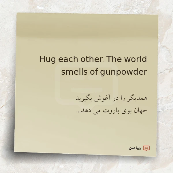 Hug each other. The world smells of gunpowder همدیگر را در آغوش بگیرید جهان بوی باروت می دهد...